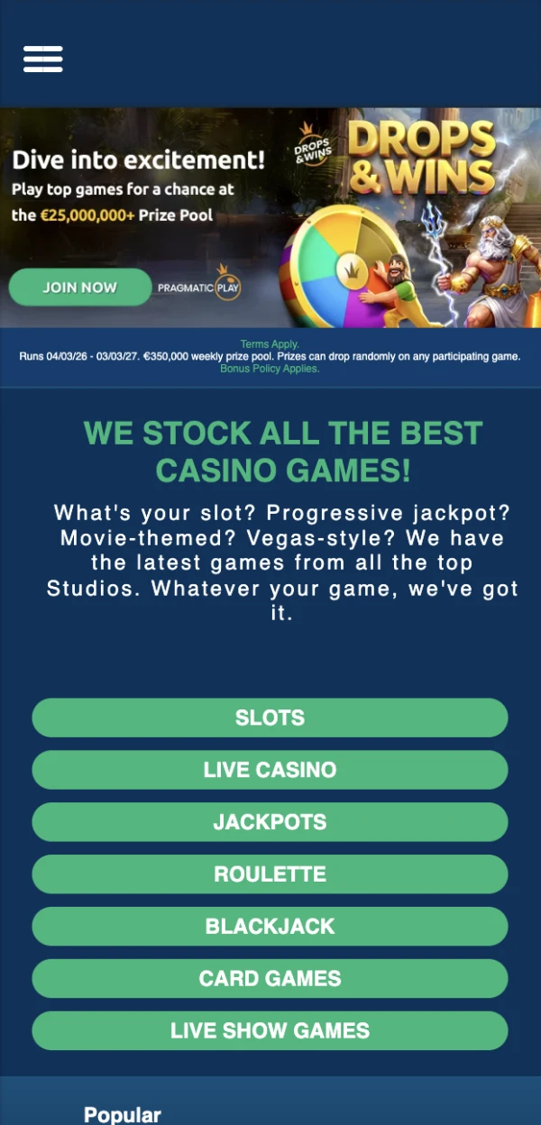 Mange brugere spørger, om hele spilbiblioteket er tilgængeligt på mobil. I praksis er langt størstedelen af vores lobby tilgængelig via mobilbrowsere, herunder live spil og centrale bordspil, så BrandNameCasino-lignende adgang er bred, selv uden download. Spillere spørger også om appfiler, men der findes ingen officiel APK eller app fra en appbutik fra os lige nu.